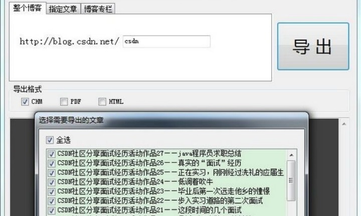 支持导出个人博客、指定文章、博客专栏,支持导出的格式有CHM、PDF和HTML